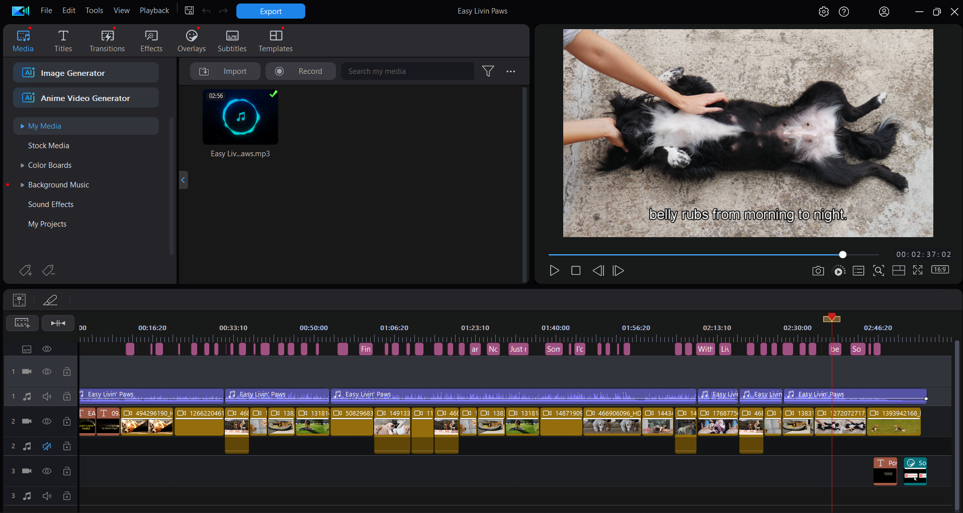 Then I used PowerDirector’s hook into Getty Images to find myself some videos of dogs doing what dogs do, particularly in time with the music and the lyrics which I had created. I then did a whole pile of editing back and forth, trimming, adding, removing, back and forth, rinse, repeat, and four hours later (give or take), I had the music video that you now see.