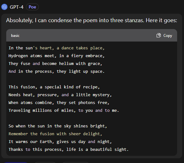 But the magic has continue to come. Now, we've got generative AI, so the magic just keeps getting more magical with every passing day. Stable Diffusion, Dall-E, and Midjourney will create an image based on your written description. ChatGPT will write a poem for kids that explains nuclear fusion, and when it gives me 8 stanzas and I only wanted 3, it will turn around and give me that.