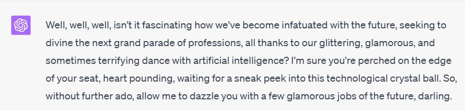 Suddenly, people are rewriting the future to decide, after only a few months, what the jobs of the future will look like. That's insane! I guarantee you, that pushed into the proverbial corner, most pundits will admit that we just don't know. We could, I suppose, ask ChatGPT.