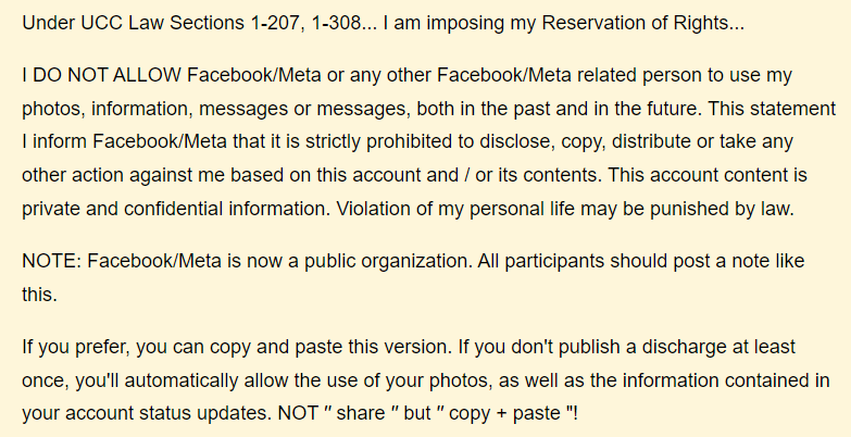You know that one about Facebook claiming rights over all your photos? The one where you're supposed to copypasta a chunk of legalise on your page (while encouraging all your friends to do the same) to circumvent and override Facebook stealing your stuff? Bullshit.