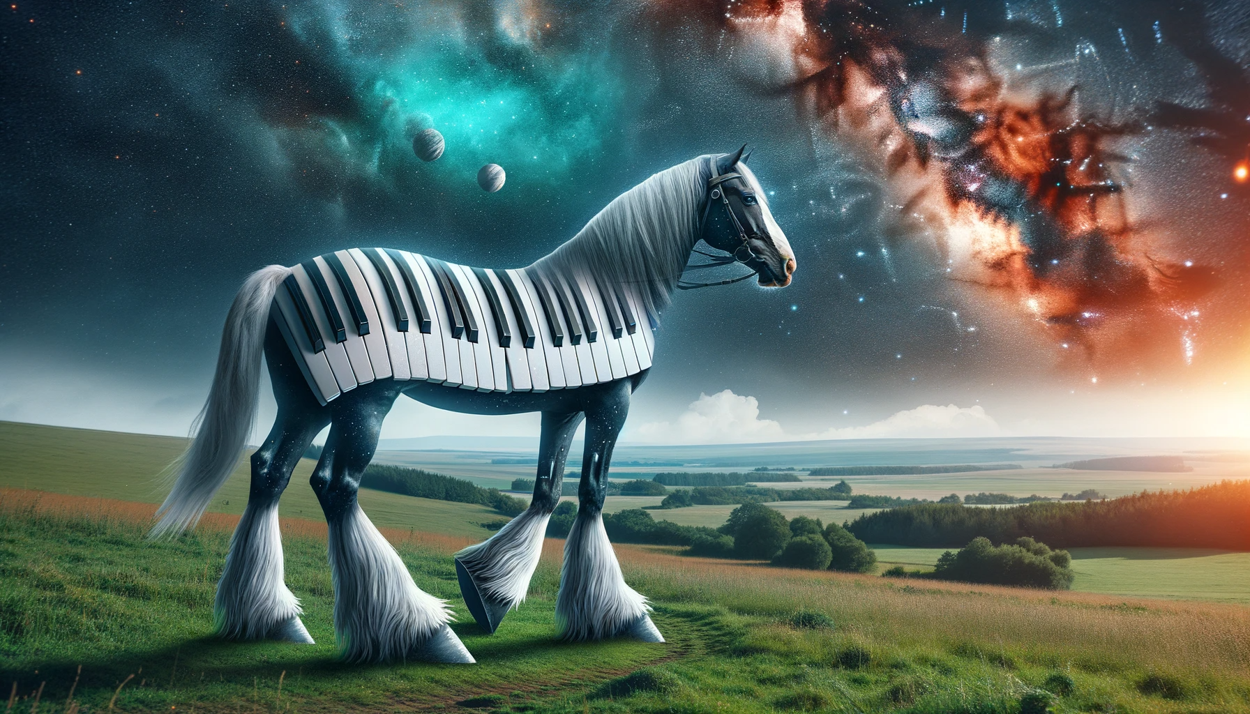On Halloween night, while waiting for kids to come begging for candy, I sat on the couch and started throwing strange but simple prompts at DALL-E 3, and basically just having fun. In case you haven't spent much time with DALL-E 3, it's different in that, on the back end, ChatGPT will take your simple prompt and rewrite it, adding various enhancements. Generally speaking, the output is far more interesting than my wimpy prompt should generate. For instance, I asked for a "Landscape picture of a horse wearing a space helmet. His legs are made from piano keys" which got me this really cool picture, even if my request for a space helmet was ignored.