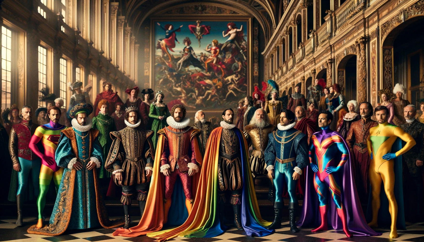Moving ahead to the Renaissance and Baroque eras, we see the lavish capes and tights favored by European aristocracy making their mark on superhero couture. The elaborate, ostentatious styles of kings, nobles, and courtiers of the time - with their bold colors, decadent fabrics, and sense of drama - shaped the over-the-top aesthetics of superhero dress. What royal wouldn't want to stride about in flowing rainbow capes and skintight leotards?