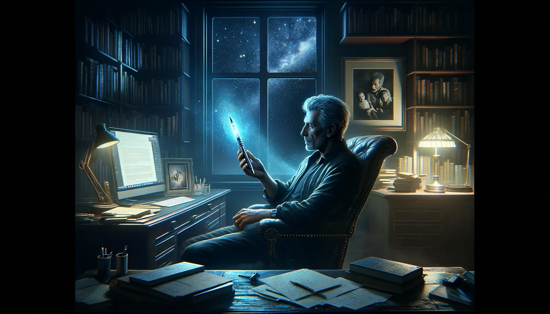 Marcel made a decision. He couldn't keep the pen, couldn't risk losing himself entirely to its cosmic power. With a heavy heart, he took one last look at the unfinished manuscript on his laptop, a story of first contact that now seemed all too prophetic. Then, in a flash of blinding light, both Marcel and the pen vanished, leaving behind a legacy of groundbreaking science fiction and an enduring mystery.